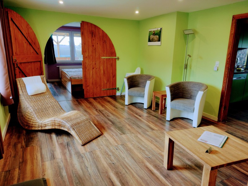 Ferienwohnung "Boomwichel" mit 60m², zwei Schlafzimmern (1x mit Doppelbett 180x200cm und 1x mit Etagenbett 90x200cm), einem Wohnzimmer mit